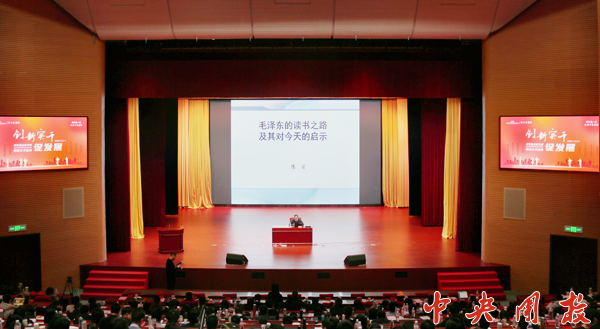 中国毛泽东诗词研究会会长、原中共中央文献研究室副主任、十三届全国人大外事委员会委员、研究员陈晋出席活动,并为师生学员作“毛泽东读书之路及其对今天的启示”专题讲座。中宣部学习出版社有限公司总经理马国仓,中国新闻出版传媒集团党委书记、董事长、总经理李忠,我校党委书记郭峰,中国新闻出版研究院院长冯士新,中国教育报刊社党委书记、社长范绪锋,北京大学学生工作部部长、校团委书记户国栋等嘉宾出席。