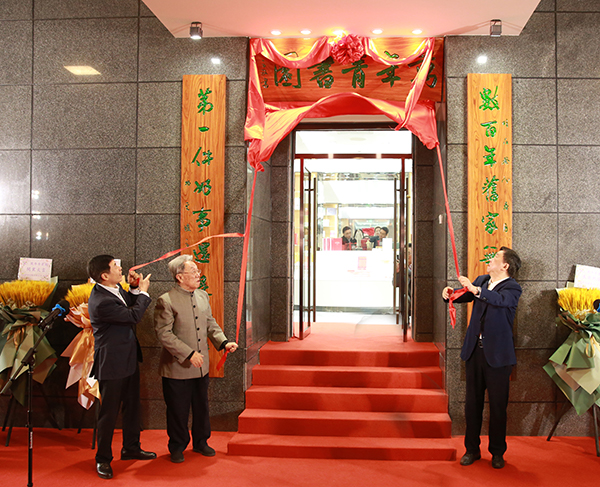 王蒙与中央党校(国家行政学院)原常务副校(院)长、第十三届全国人大社会建设委员会主任委员何毅亭,中央团校党委书记倪邦文为万年青书园揭牌。