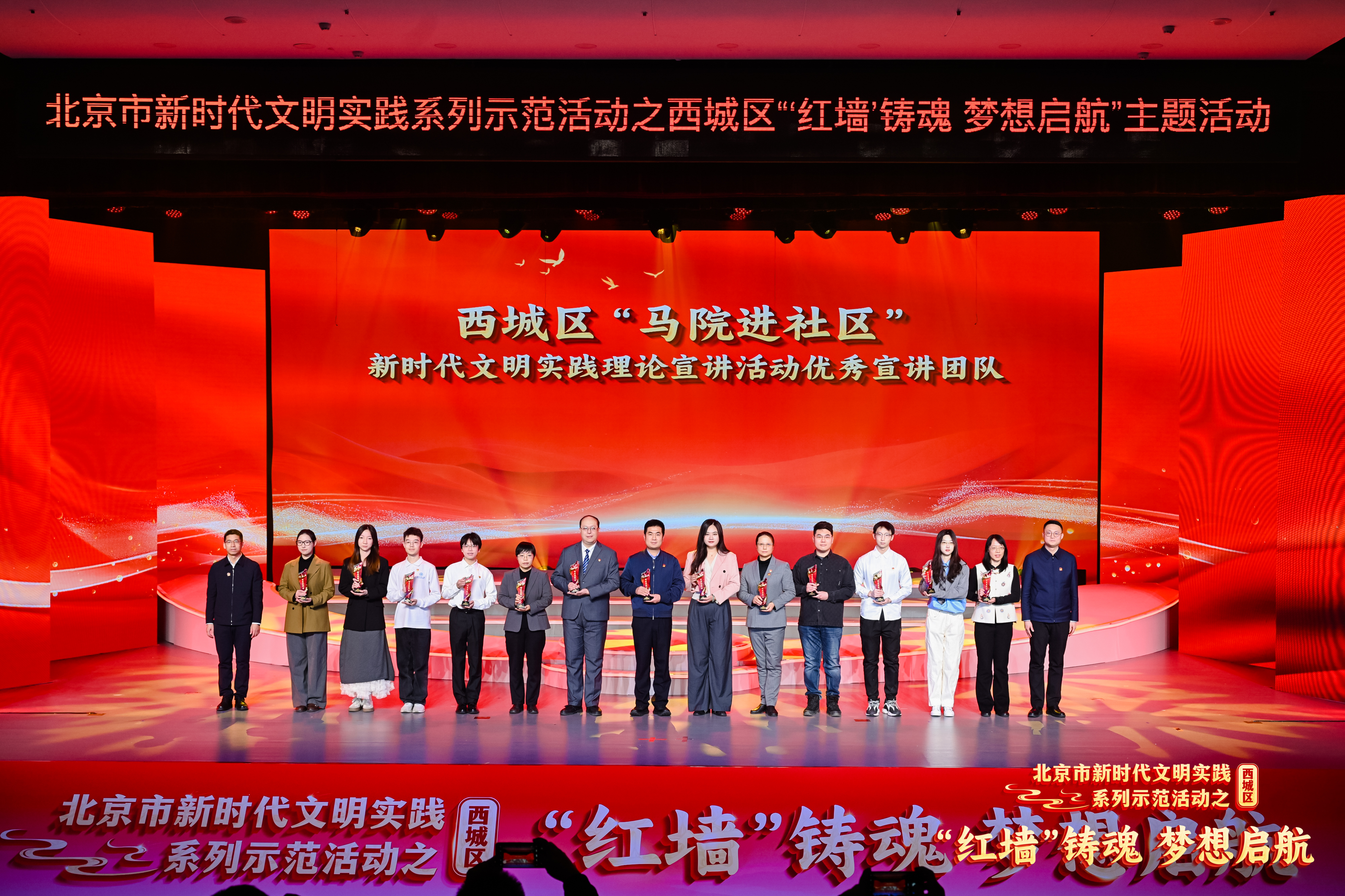 12月19日,“红墙”铸魂 梦想启航——新时代文明实践系列示范活动在西城区新时代文明实践中心顺利举行。我院青年马克思主义理论宣讲团荣获西城区“马院进社区”新时代文明实践理论宣讲活动“优秀宣讲团”,我院2023级硕士研究生孙彪荣获“优秀宣讲员”。